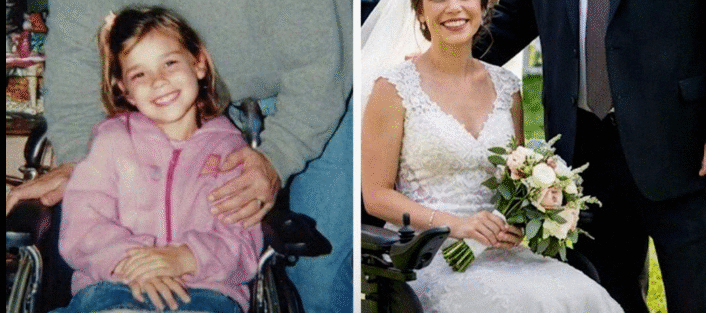 She was sitting quietly in a wheelchair. Her hair was tied back in a neat ponytail, and she was holding a notebook in her lap.